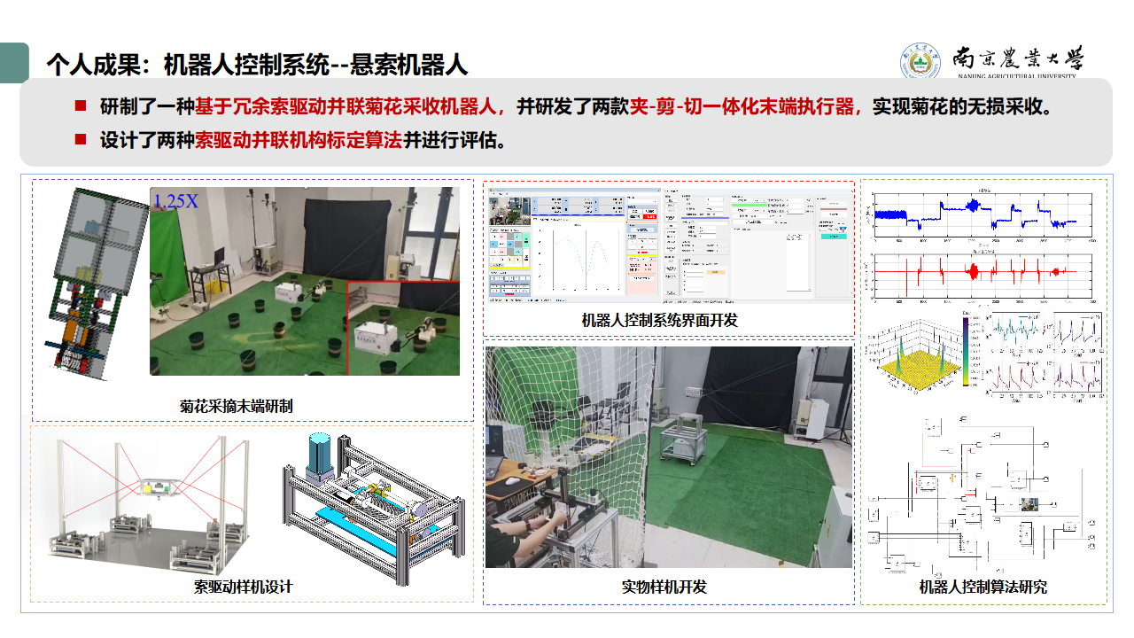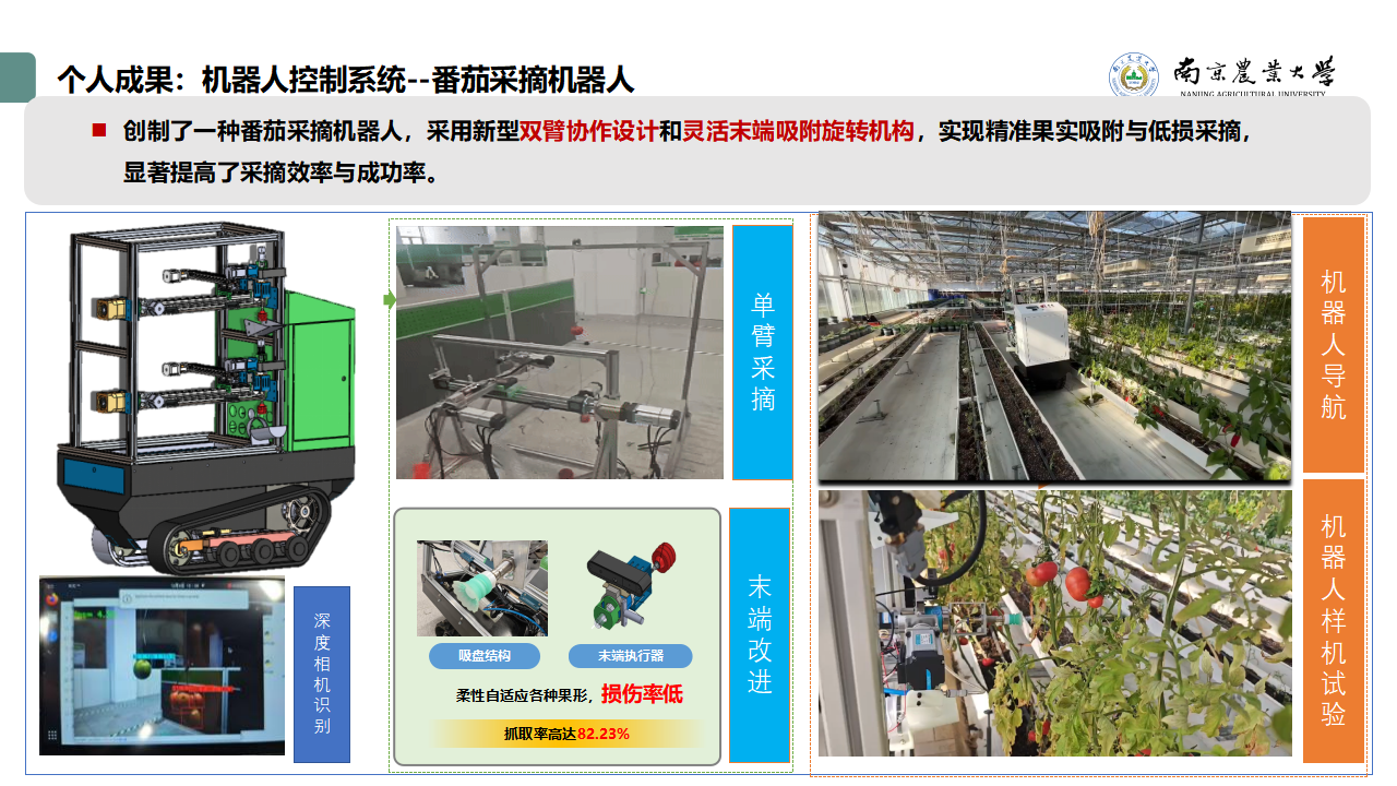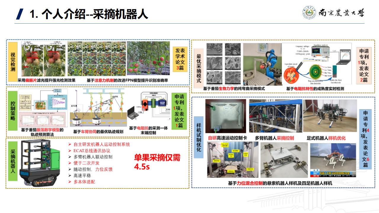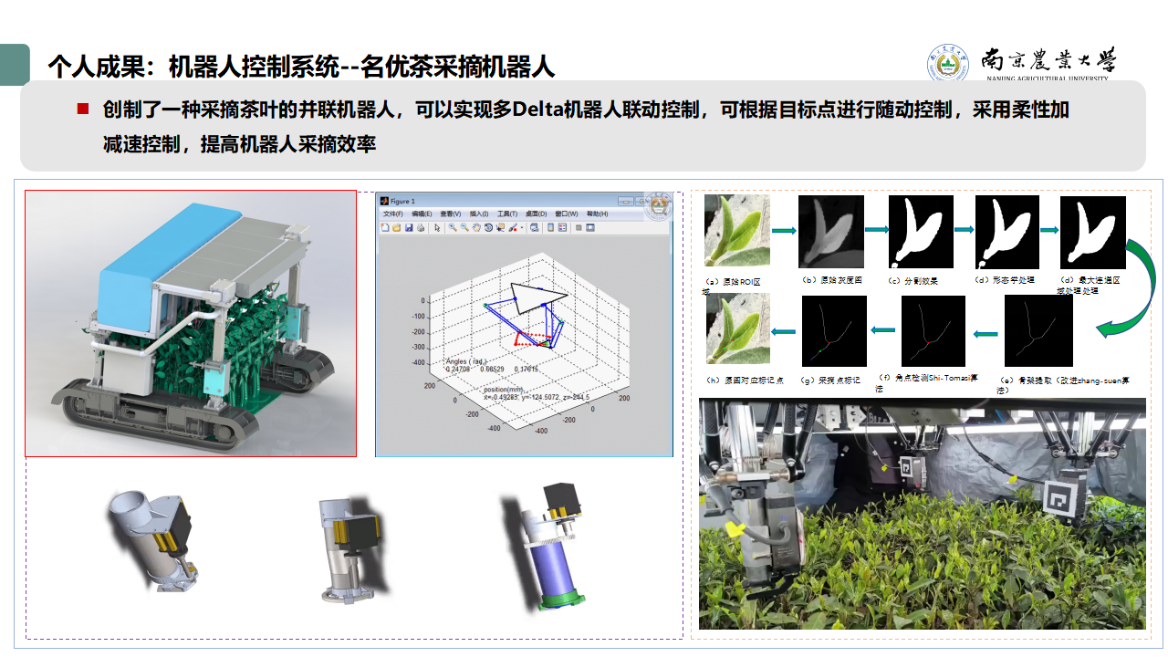 章永年,男,副教授,1984年生,硕士生导师,主要从事农业机器人方向的研究,以第一作者/通讯作者发表学术论文20余篇,授权专利10余项,登记软件著作权4项。主持国家重点研发计划子课题、国家自然科学基金、江苏省科技支撑项目、江苏省农业自主创新项目、中央高校基本科研业务费、企业合作项目等项目30余项,获江苏省机械工业科学进步奖二等奖1项。本人长期在机器人领域进行深入研究,已形成了具有自主知识产权并产业化的机器人控制系统:开展高速高精运动控制、力位混合控制、多臂协同控制等研究工作,自主研发脉冲、总线式数控系统及驱动器,并得到市场认可;研发了基于网络通讯的机器人运动控制卡,实现机器人手眼、多臂协同控制,提高机器人采摘效率;研发了激光运动控制卡,实现激光、振镜、机械运动同步控制;针对丘陵坡地名优茶采摘难题,采用悬索机器人代替履带式、轮式车辆,利用悬索高速运动特性,设计模块化放绳装置,研究精准定位及抑振技术,集成机器视觉、轨迹规划等算法,实现高效精准采摘,为丘陵坡地名优茶采摘提供新的解决方案。